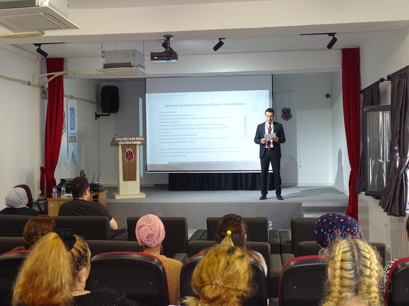 Ceza İnfaz Kurumları ile Denetimli Serbestlik Müdürlüklerinin iş birliği kapsamında ceza infaz kurumlarındaki tutuklu ve hükümlülerin denetimli serbestliğe ayrılma durumlarında; dış dünya ile uyumlarını kolaylaştırmak, denetimli serbestlik sisteminin işleyişi ve sorumlu oldukları yükümlülükleri anlamalarını sağlamak ve hükümlülerin denetimli serbestliğe geçiş süreçlerinin etkin bir şekilde yürütülmesine olanak sunmak amacıyla kurumumuz Psiko-Sosyal Yardım Servisi öncülüğünde denetimli serbestlik sürecine dair bilgi ve farkındalık kazanmalarına olanak sağlayacak Denetimli Serbestlik Bilgilendirme Semineri düzenlenmiştir. İlgili seminer Çarşamba Denetimli Serbestlik Müdürlüğünü tarafından görevlendirilen personeller aracılığı ile gerçekleştirilmiştir. Denetimli Serbestlik Bilgilendirme Seminerine katkı sunan uzman personele teşekkür ederiz.
