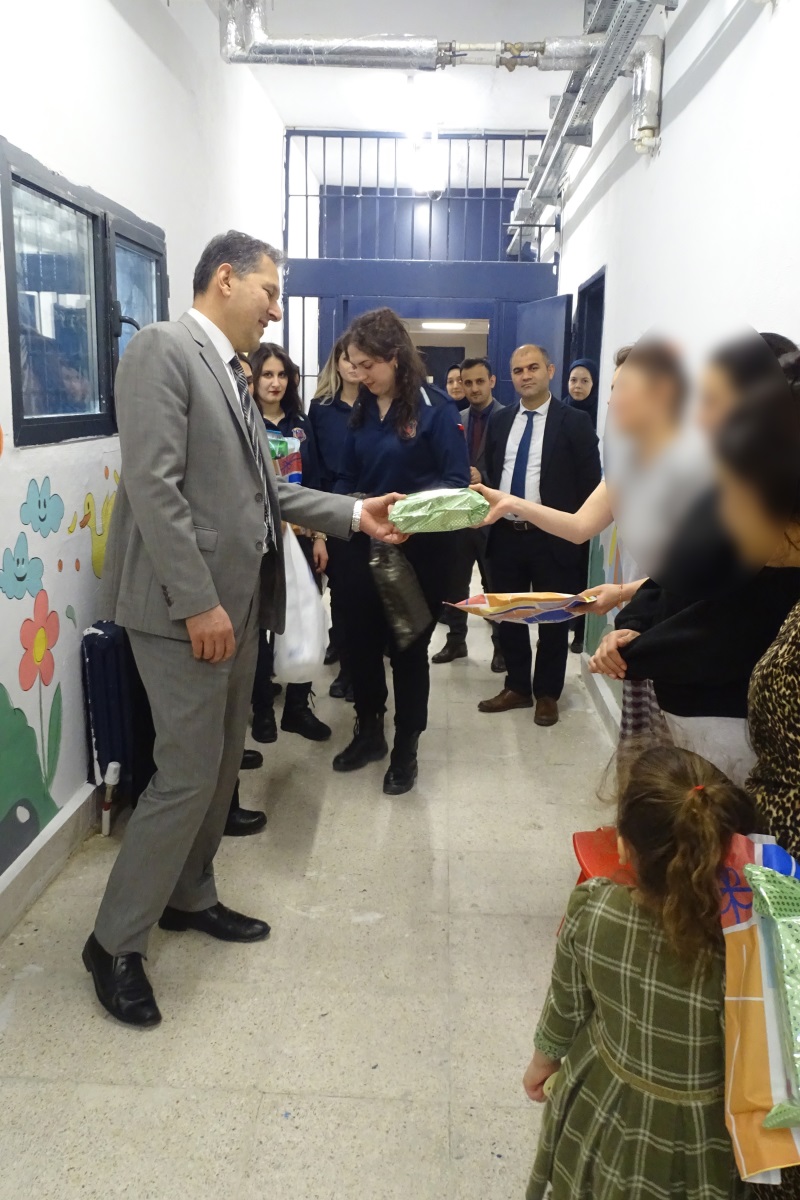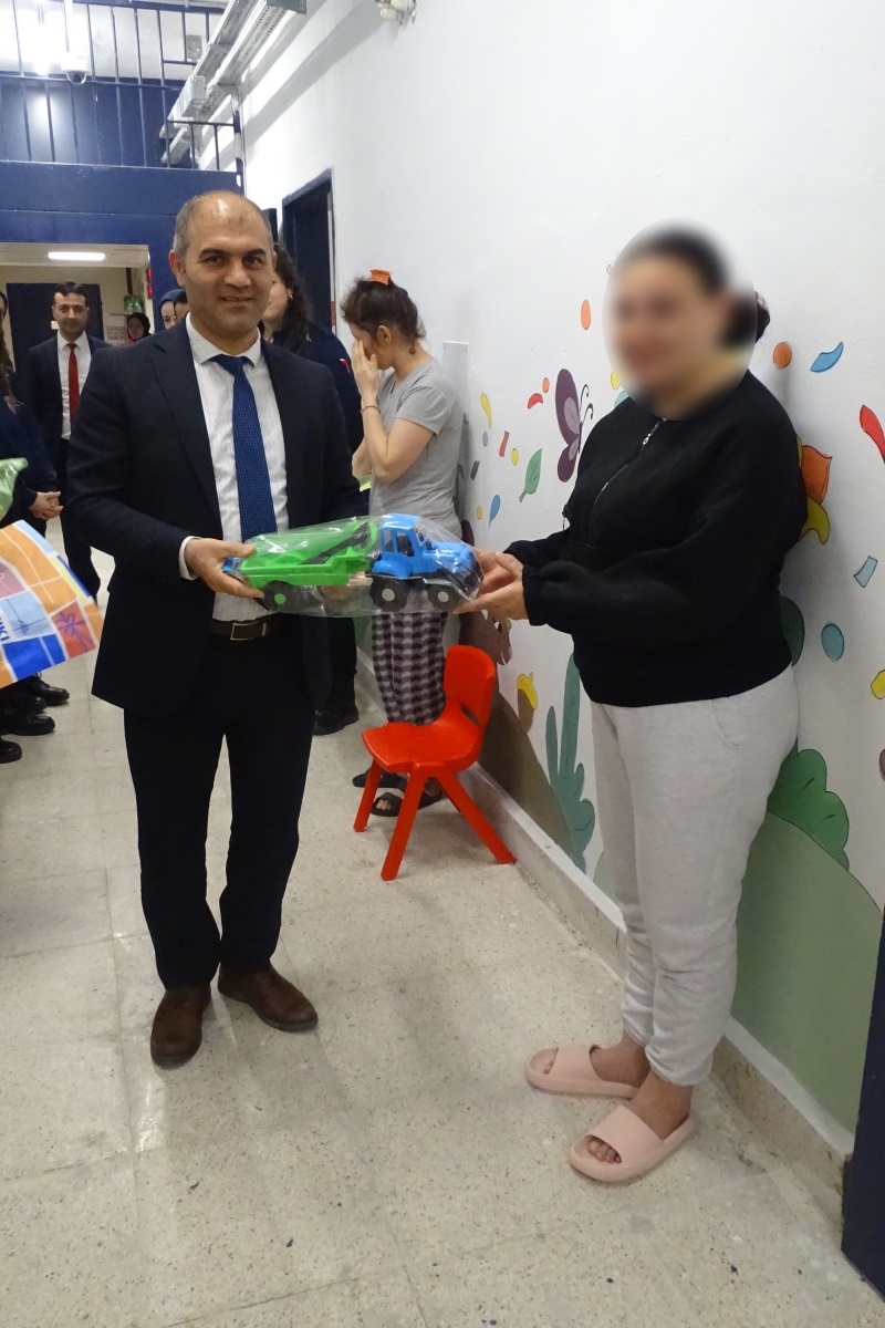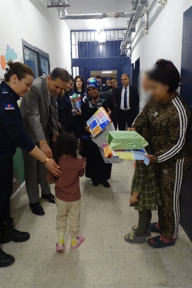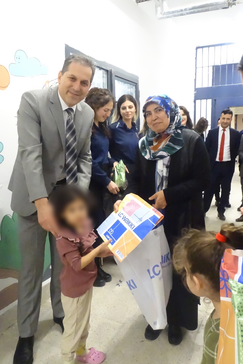 Program kapsamında, Kurum Müdürümüz Sayın Dursun Ali Ceryan ve Kurum 2. Müdürümüz Sayın Tunay Altun tarafından annesi yanında kalan 0-6 yaş grubu çocuklara çeşitli hediyeler takdim edildi. Çocukların bayram sevincine ortak olan bu anlamlı buluşma hem anneler hem de çocuklar için unutulmaz bir hatıra oldu.