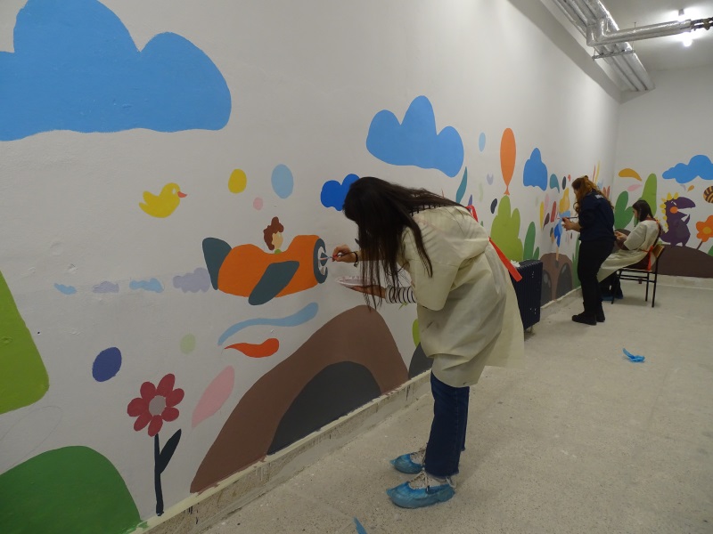 19 Mayıs Üniversitesi Güzel Sanatlar Eğitimi Bölümü öğrencileri tarafından Kurumumuz bünyesinde bulunan anne - çocuk odalarına çocukların hayal dünyasına dokunarak, estetik duygularının gelişmesine katkı sağlaması düşüncesiyle duvar renklendirme çalışması yapılmıştır.