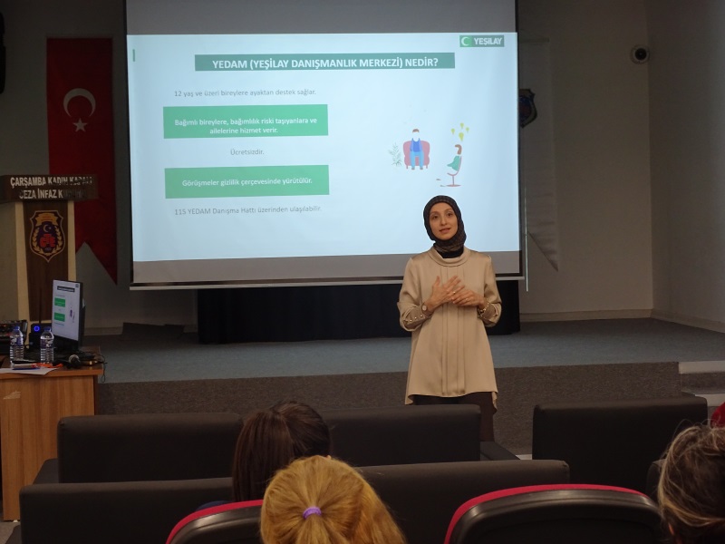 Kurumumuz Psiko-Sosyal Yardım Servisi öncülüğünde; hükümlü ve tutukluların madde bağımlılığı ile mücadele sürecine dair bilgi ve farkındalık kazanmalarına olanak sağlamak, rehabilitasyon süreçlerini desteklemek ve topluma uyumlarını kolaylaştırmak amacıyla 07.11.2025 ve 03.12.2025 tarihlerinde Sigara, Alkol ve Madde Bağımlılığı ile Mücadele konulu seminer düzenlenmiştir. İlgili seminer Samsun Yeşilay Danışmanlık Merkezi (YEDAM) tarafından görevlendirilen uzman personel aracılığı ile gerçekleştirilmiştir. Emeği geçen ve katkıda bulunan uzman personellere teşekkür ederiz.